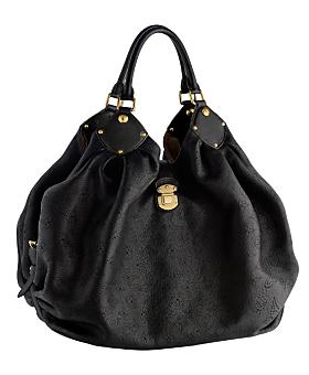 Le cuir du sac, c’est aussi toute une histoire! Il est doux, mou, d’un noir mat mais vraiment lumineux, et entierement micro-perfore pour reproduire le monogramme LV! Le Mahina XL a aussi juste ce qu’il faut de clous (or) et un fermoir qui me rappelle les sacoches de voyage de ma grand mere!