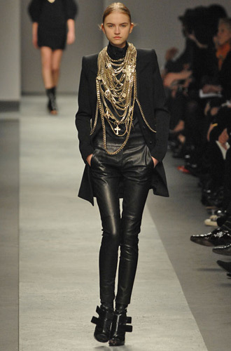 @Mademoiselle M.: en fait, j’pense pas vraiment etre a la mode…J’suis plutot une fan de vetements et de style en general! J’ai travaille comme mannequin pendant 6 ans pourtant, et c’est la 1e fois que je reproduis une tenue de runway… mais c’est vrai que je suis beaucoup plus ce qui se passe depuis que je traine sur les blogs… ca y est j’ai mes franges, mon collier plastron, ma blouse folk, je cours apres mon tregging… ou est ce que ca va me mener??? 😉