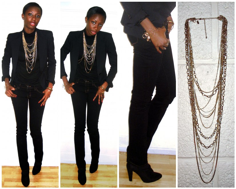 Collier Plastron: French Connection (+ chaine de ma belle mere et croix or achetee a un bijoutier senegalais a Abidjan)