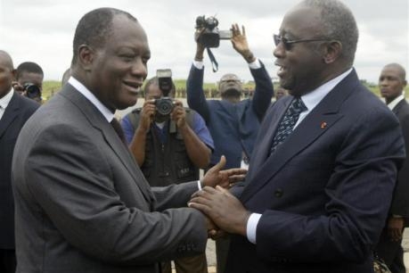 Et les problèmes ont commencé. Voyez vous, ces éléctions ont marché, elles ont tellement bien marché qu’au lieu d’un, on a eu deux présidents! Monsieur Laurent Gbagbo (LG), président sortant candidat à sa réélection, déclaré vainqueur par son pote du Conseil Constitutionnel, et Monsieur Alassane D.Ouattara (ADO), ancien premier ministre jusqu’ici tenu à l’écart de la candidature à la présidence par une conjonction de coordination (grammaire du primaire les gens… « mais ou et donc or ni car »), et déclaré vainqueur par le monsieur de la commission électorale à son hotel.