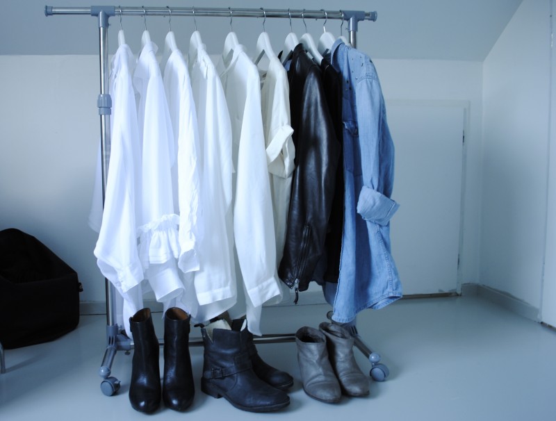 P.S: Il y a aussi sur le portant ma chemise de jeans H&M Trend que je ne mets quasiment jamais, mon perfecto Massimo Dutti que j’adore, mais qu’il fait bien trop froid pour mettre, et mon blazer H&M rose poudré, qu’on ne voit en fait pas!