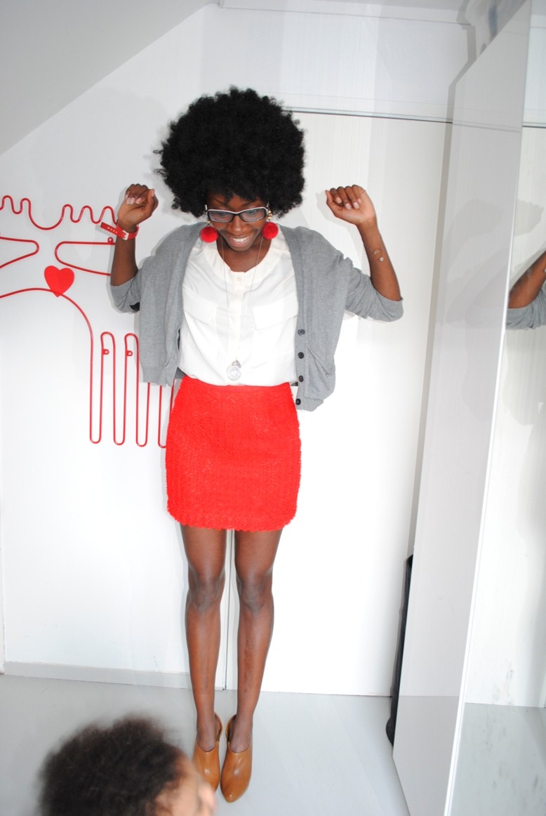 @unefemmenoire: Merci Josee! Je suis folle de cette jupe, la couleur, les details et son prix tout mini! 50 NOK equivalent a 5 euros environ. Le taux de change est de 8 couronnes pour un euro normalement mais vu que la tva est plus elevee ici, chez H&M c’est plutot 10. Bisous