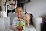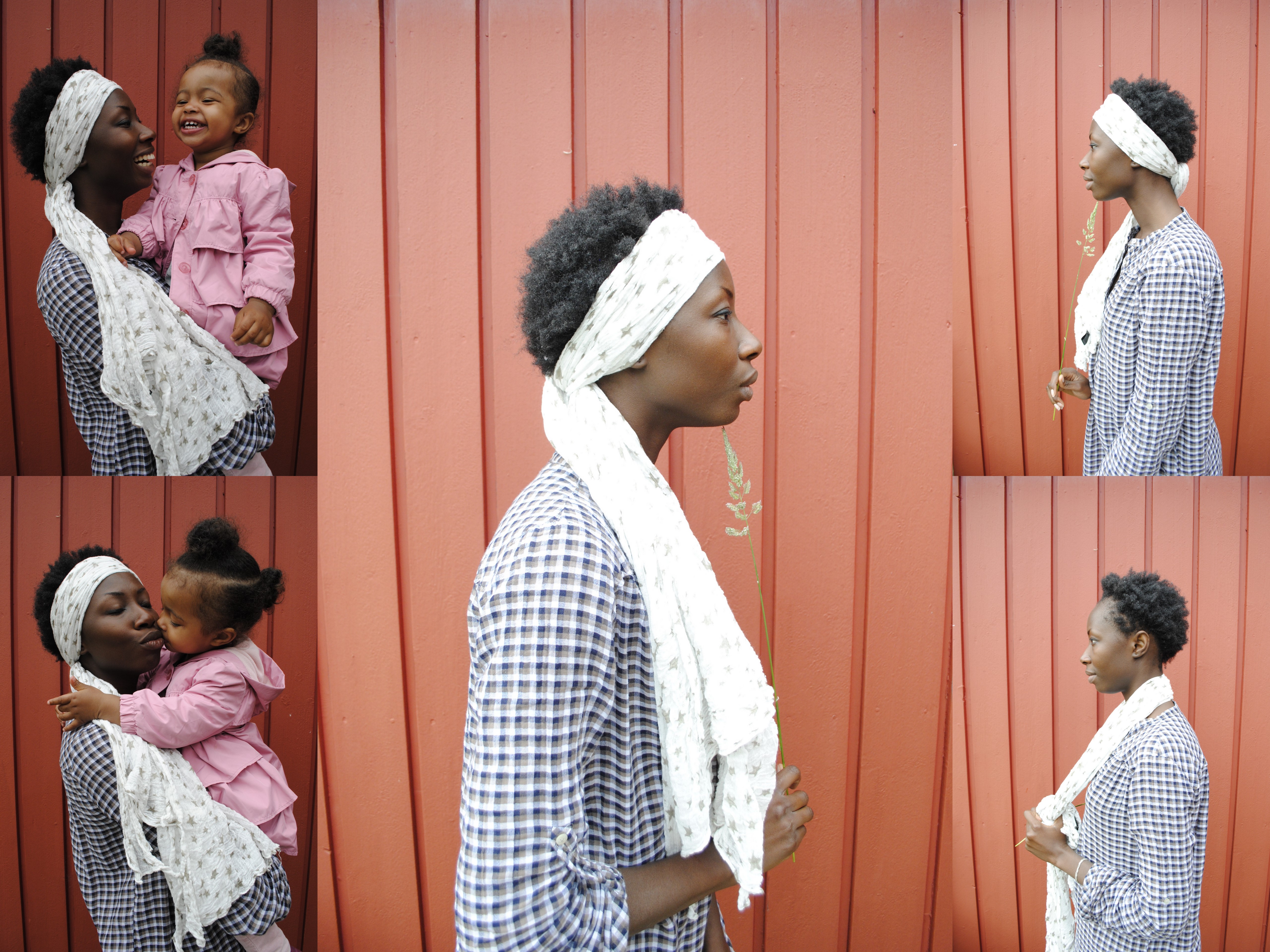 Je vous avoue que je n’ai pas eu le courage de dévoiler ma tempe droite, mais comme les camerounais disent, j’ai les monvieux! Imaginez simplement que c’est bien (oh combien) pire que sur la tempe gauche! Bon et sinon mes cheveux n’étaient pas lavés d’où l’effet terne/grisâtre/crado. Hihihi, et je vois qu’Amayah a hérité du rire de cheval de sa mère!