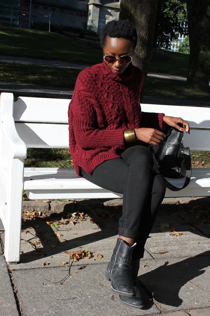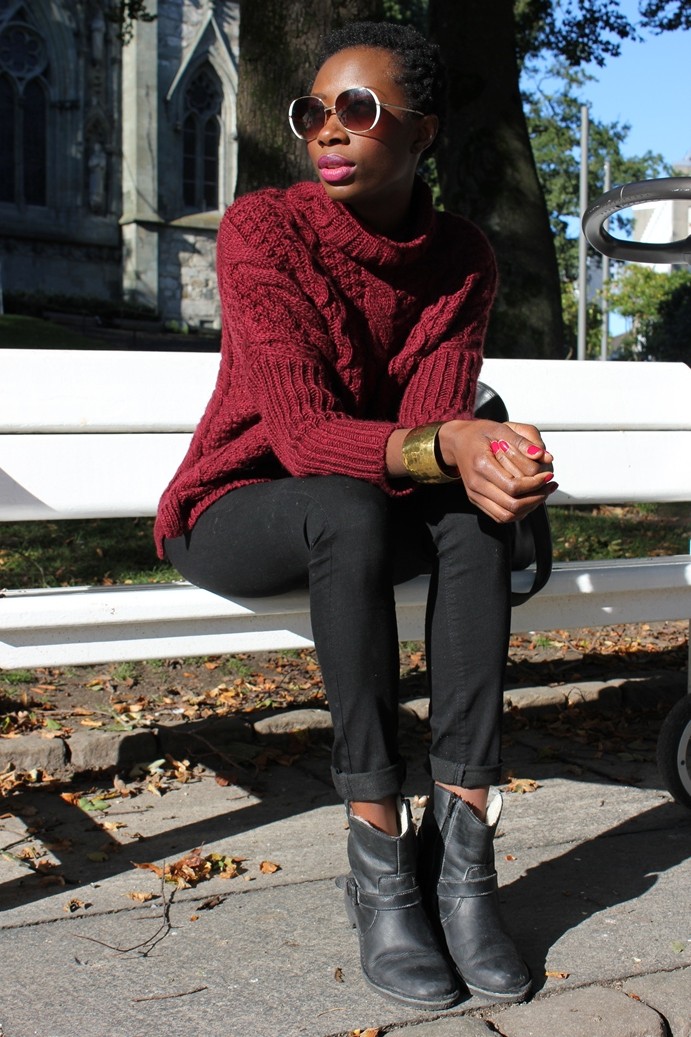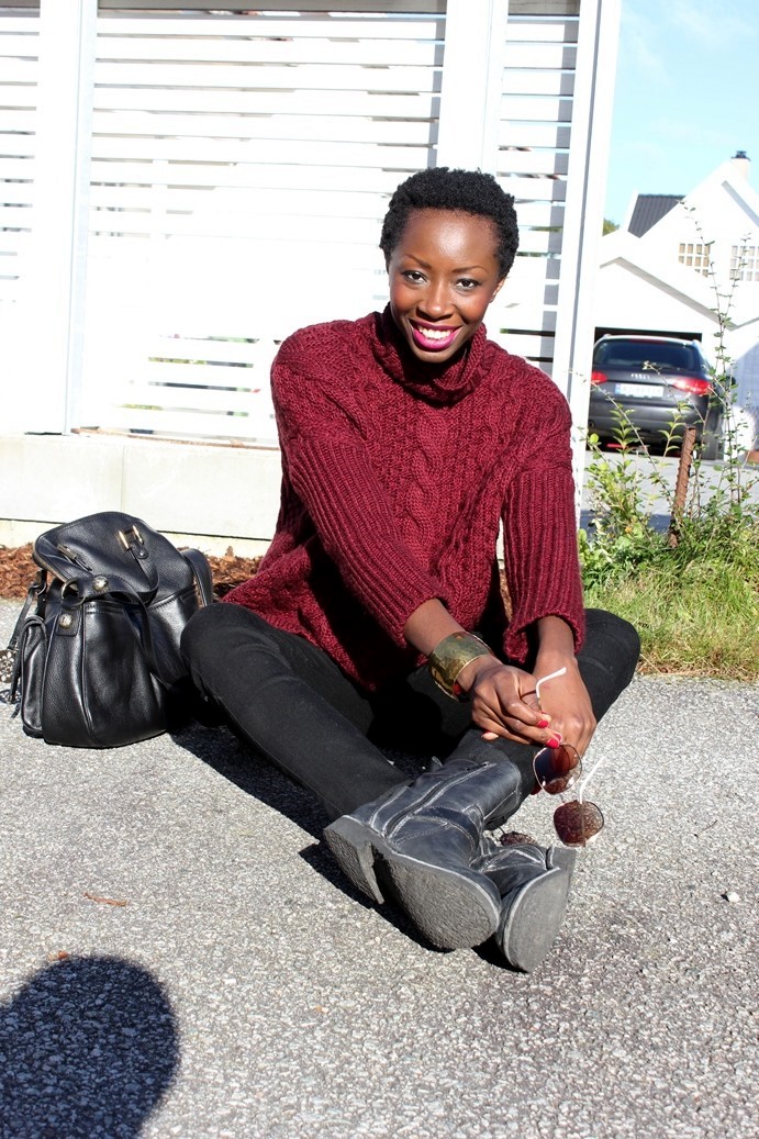 Jolie tenue j’aime le gros pull qui à l’air d’être super confortable!