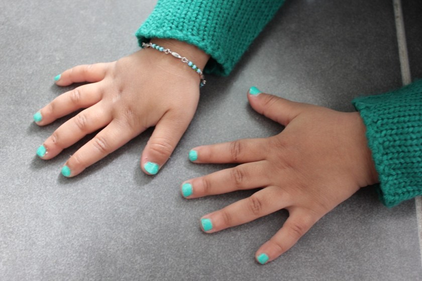 L’exemple le plus flagrant dans mon cas, c’est bien le vernis à ongles. Amayah n’est pas très fifille mais elle adore les ongles colorés. Et j’avoue que malgré tous les préjugés que j’avais (et que j’ai toujours quelque part) et que je proférais à qui voulut entendre sur les mamans qui ne savent pas donner des repères clairs aux enfants, le vernis c’est notre petit moment de partage.