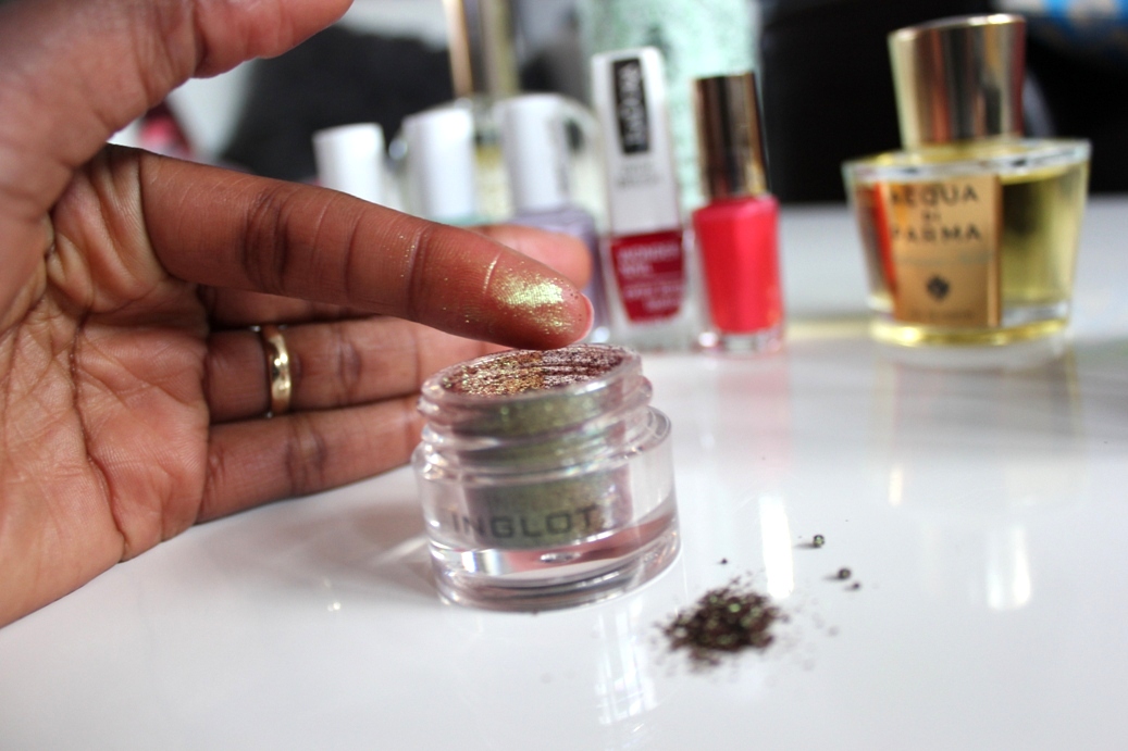 - AMC Pure Pigment Eye Shadow 84 d’Inglot: Après avoir été complètement obsédée par ce fard, je ne l’ai utilisé que durant une semaine. C’est un souvenir de l’époque où comme beaucoup de novices qui découvrent les tutos de maquillage sur YouTube, j’achetais tout ou presque pour la réalisation d’un look (Short and Sassy de Coloured Beautiful en l’occurence). Je n’ai rien à lui reprocher, la couleur est superbe, et la tenue est remarquable (comme pour tous les produits Inglot que j’ai testé jusque là), mais je dois avouer que je n’ai pas encore le tour de main pour appliquer correctement les fards irisés, et je me retrouve donc soit avec l’effet paupières enflées ou avec les cernes illuminées . C’est bien dommage!
