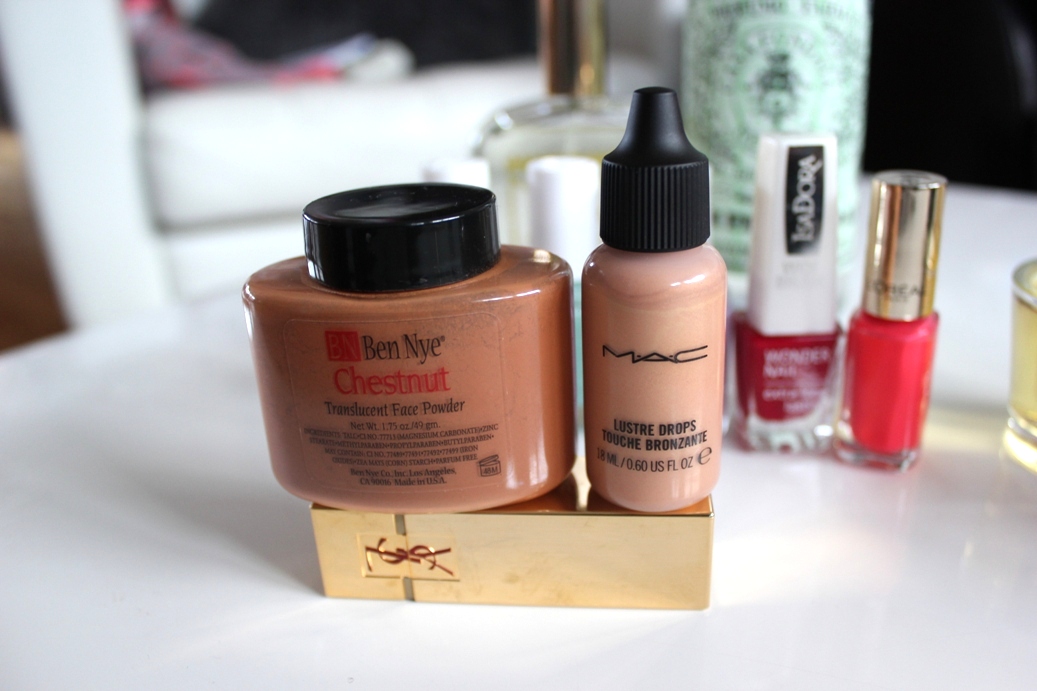 - Translucent Face Powder Chestnut de Ben Nye: Adoptée depuis 6 mois environ, c’est désormais un produit indispensable de ma boite à maquillage. La teinte Chestnut correspond parfaitement à ma peau, ce qui fait que je peux la porter, non seulement pour fixer et retoucher lorsque je porte un fond de teint, mais aussi comme poudre libre par dessus mon anticernes lorsque ma peau est heureuse. J’en suis tellement satisfaite que je l’ai aussi désormais dans la teinte Topaz pour fixer mon highlighting. Le seul petit défaut que je lui trouve, c’est le packaging, car bien que j’aime ce flacon genereux en quantite, il s’avère desastreux à l’utilisation. Il est très difficile de doser modérémment, ce qui peut entraîner un certain nombre de catastrophes poudreuses de grand matin. Euh, non ça n’est pas du vécu. Après, ça reste un défaut assez facile à parer, il suffit d’utiliser un boitier vide comme palette, et prévenir le gaspillage (mais bon, ça vaut quand même son pesant de chianterie!).